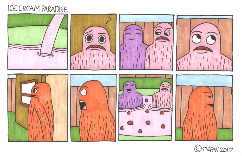 Each story depicts everyday life, surrealism and fantasy stories with the four main characters in this web comic: Rick, John, Benji and Ed.